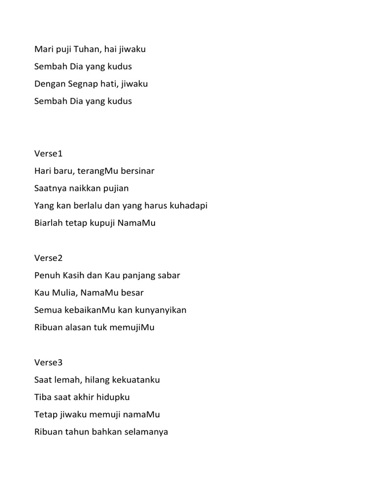 New Singing Lesson Videos Can Make Anyone A Great Singer Bless the Lord oh my soul Oh my soul Worship His Holy name Sing like never before Oh my soul Ill worship Your Holy name The sun comes up Its a new day dawning Its time to sing Your song again Whatever may pass And whatever lies before me Let me be singing When the evening comes Bless the Lord oh my soul Oh my soul. Ten thousand reasons for my heart to find. Pujilah Tuhan hai jiwaku h ai jiwaku.