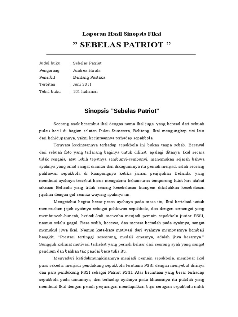 Resensi Novel Sebelas Patriot Docx Pdfcoffee Com