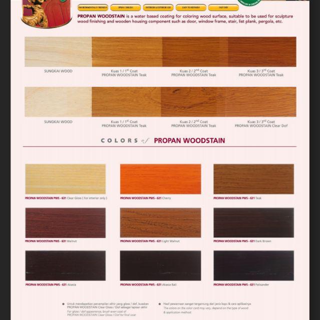 Berbeda dengan seri fancy color PROPAN WOODSTAIN PWS-631 memiliki hasil akhir yang lebih klasik serta mampu membuat tampilan kayu semakin cantik dan menarik. Jual Katalog IMPRA Melamik Kartu Warna Woodstain dengan harga Rp100000 dari toko online Decor Indo Jakarta Barat. Wood finishing interior adalah jajaran produk-produk cat berkualitas dari PT Propan Raya ICC untuk melapisi dan melindungi interior dengan bahan dasar kayu.