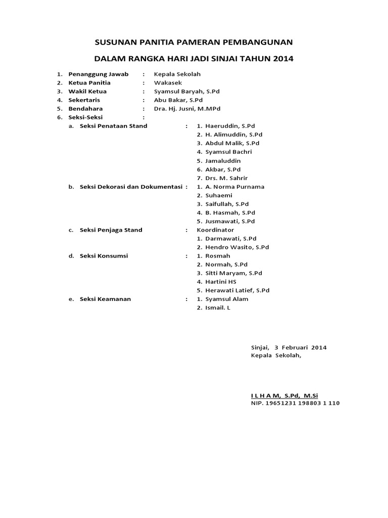 Struktur susunan kepanitiaan bisa terdiri dari ketua wakil ketua sekretaris bendahara dan berbagai seksi-seksi yang mendukungnya. Surat untuk bupati bandung barat. Pengertian Pameran Seni Rupa Fungsi Unsur Jenis Tujuan dan Contoh Pameran Seni Rupa yang dimana dalam hal ini meliputi sejarah arti asas tujuan dan tokoh nah agar lebih dapat.